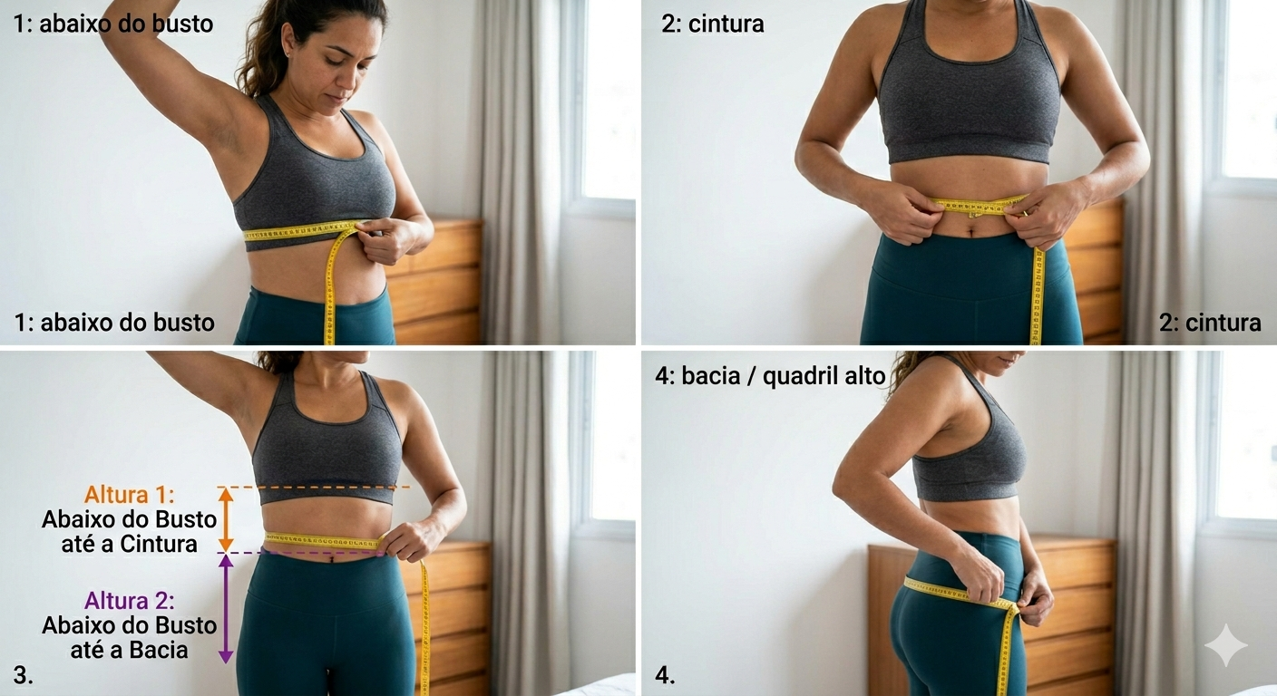 Recomendamos que você tire as medidas usando roupas leves ou roupas íntimas para obter resultados mais precisos. É importante manter-se relaxado e não prender a respiração ao tirar as medidas.